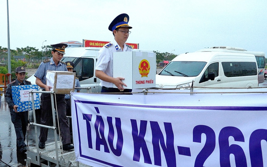 Thùng phiếu được vận chuyển đến với các chiến sĩ đang công tác trên biển và hải đảo để thực hiện nhiệm vụ bầu cử