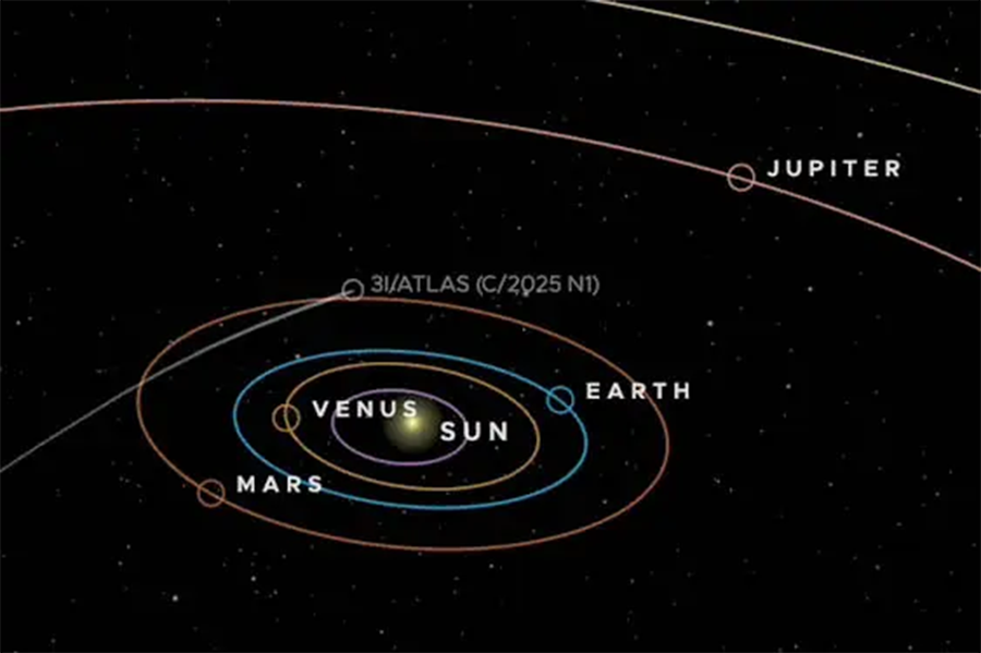 Biểu đồ đánh dấu đường đi của sao chổi 3I/ATLAS trong hệ Mặt Trời. Ảnh: NASA