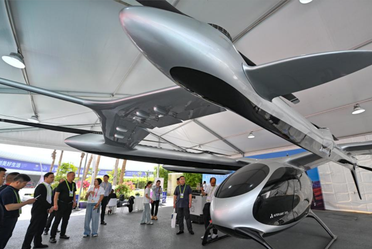 Một mẫu eVTOL (máy bay cất cánh và hạ cánh thẳng đứng chạy điện) do Trung Quốc phát triển, biểu trưng cho làn sóng bùng nổ của kinh tế tầm thấp. Ảnh: Xinhua