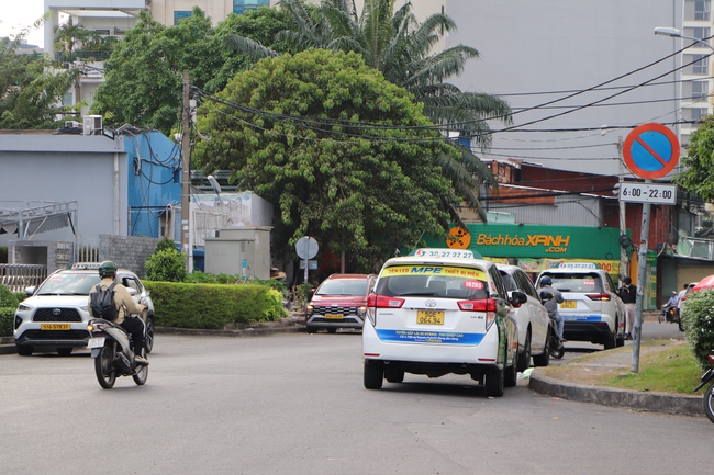 Các ô tô chủ yếu của các hãng taxi đậu chờ đón khách ở sân bay Tân Sơn Nhất. Dù cơ quan chức năng đã đặt rất nhiều biển cấm đỗ xe, tuy nhiên các tài xế taxi vẫn đậu bất chấp.