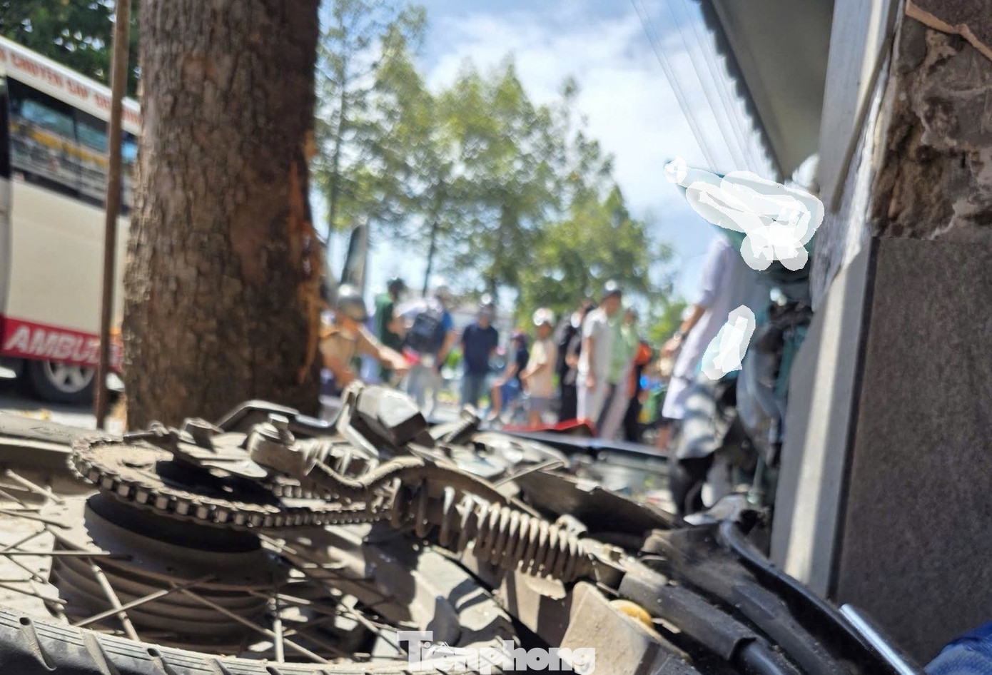Chiếc xe máy và cây xanh bị ô tô tông trúng