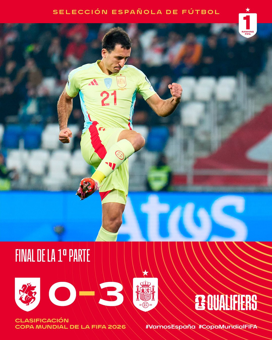 45 phút đầu khép lại với tỷ số 3-0 nghiêng về Tây Ban Nha