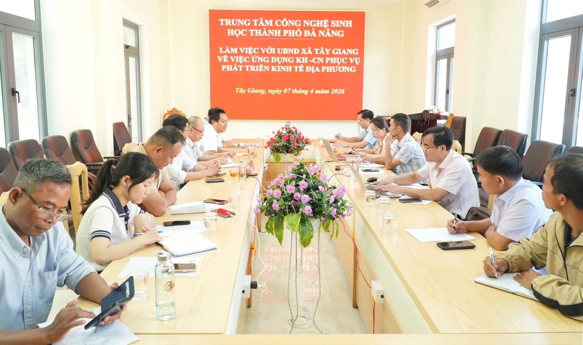 Sáng 7/4, Trung tâm Công nghệ sinh học thành phố Đà Nẵng làm việc với UBND xã Tây Giang về việc thúc đẩy ứng dụng khoa học - công nghệ nhằm nâng cao giá trị sản xuất và bảo vệ môi trường.