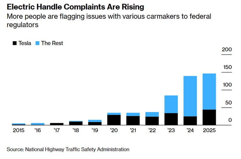 Số lượng khiếu nại về tay nắm cửa điện gửi đến NHTSA đang gia tăng nhanh.