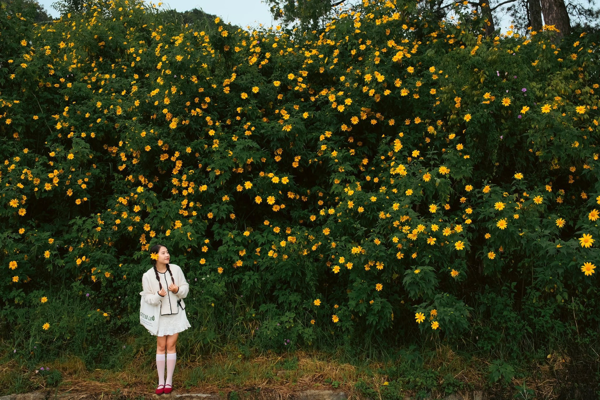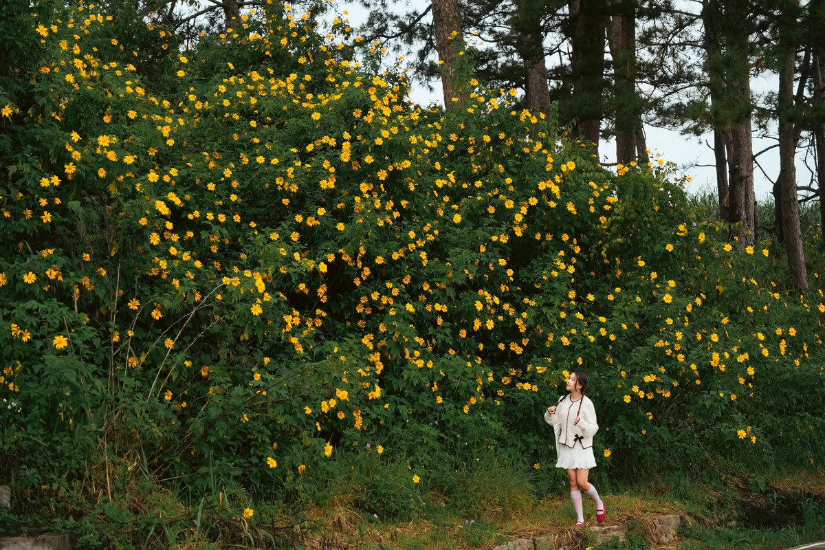 Cùng lúc, hoa dã quỳ bắt đầu nở rộ, tạo nên những cung đường vàng rực rỡ. Từ đèo Prenn, đèo Tà Nung ở Đà Lạt đến miệng núi lửa Chư Đăng Ya ở Gia Lai hay quanh hồ Lắk, hoa dã quỳ nhuộm vàng cả triền đồi, khiến khung cảnh trở nên sống động. Ảnh Diễm Quỳnh