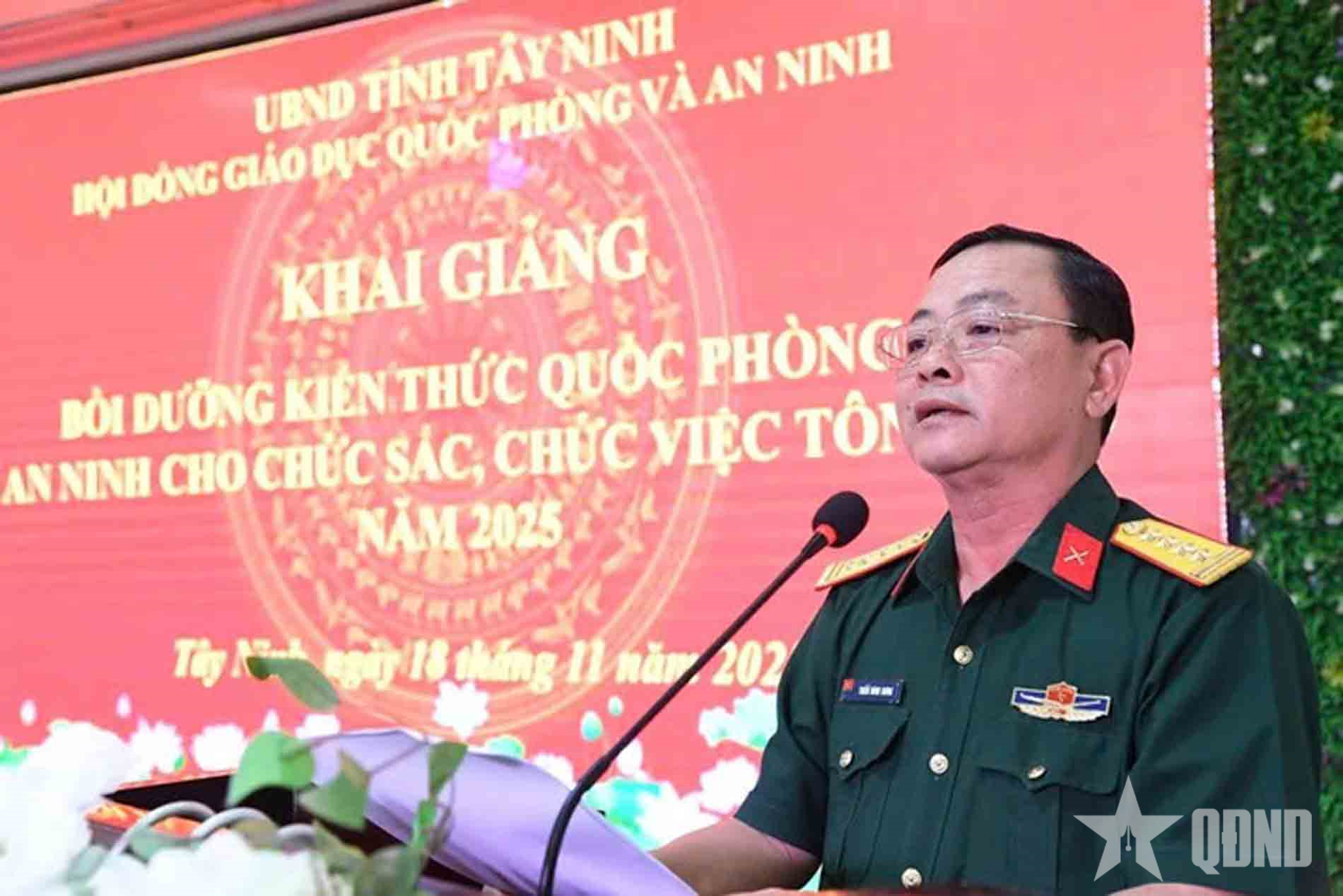 Phát biểu khai giảng, Đại tá Trần Đình Hưng, Phó chỉ huy trưởng, Tham mưu trưởng Bộ CHQS tỉnh Tây Ninh nhấn mạnh tầm quan trọng của công tác bồi dưỡng kiến thức quốc phòng và an ninh đối với chức sắc, chức việc trong xây dựng nền quốc phòng toàn dân vững mạnh.