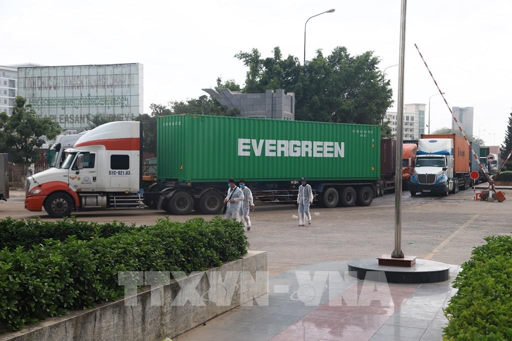 Hoạt động xuất nhập hàng hóa qua biên giới tại Cửa khẩu quốc tế Mộc Bài. Ảnh: Thanh Tân - TTXVN