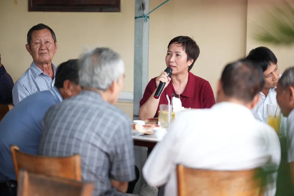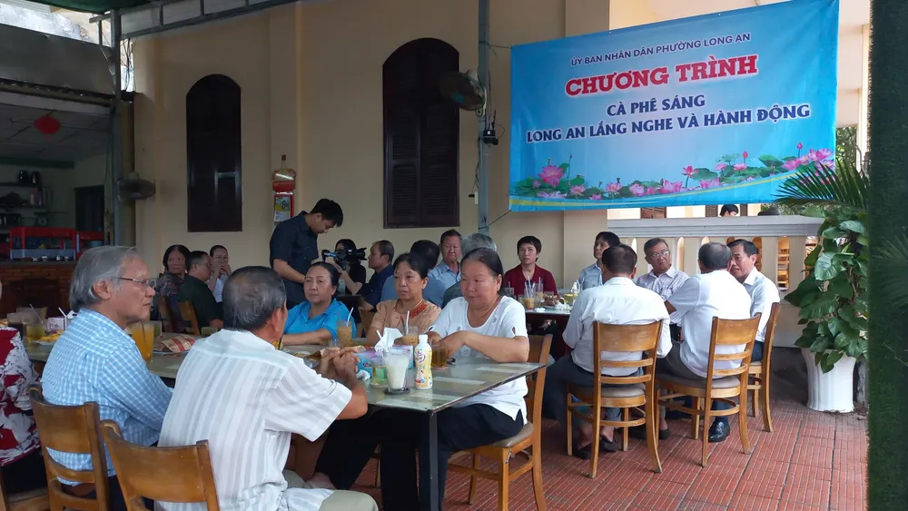 Chính quyền phường Long An và người dân tại chương trình cà phê sáng. Ảnh: NT
