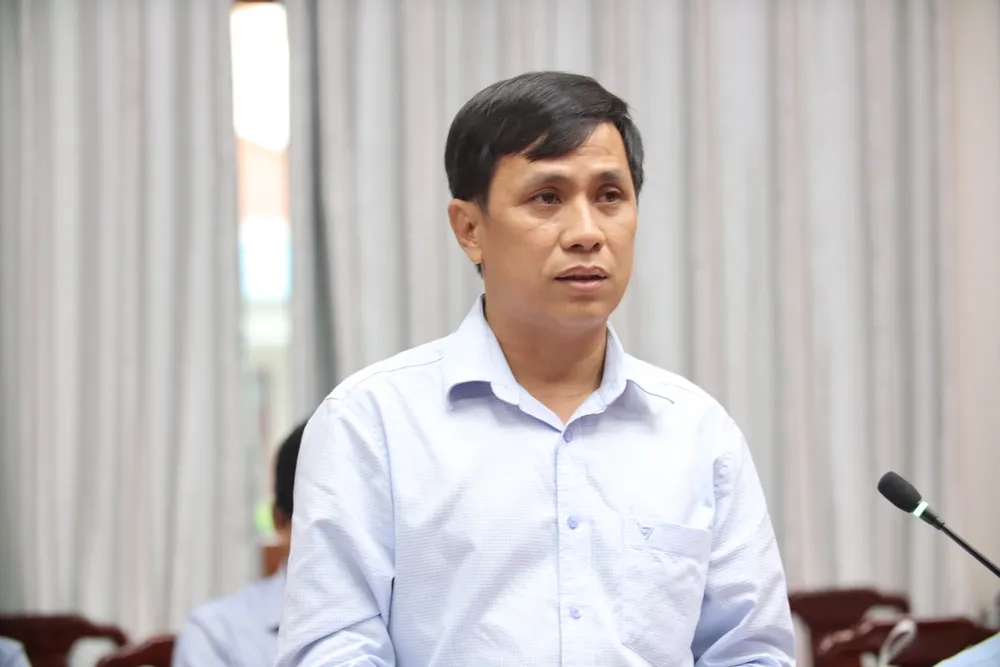 Lãnh đạo Sở Khoa học và Công nghệ tỉnh phát biểu tại buổi họp báo. Ảnh: HUỲNH DU
