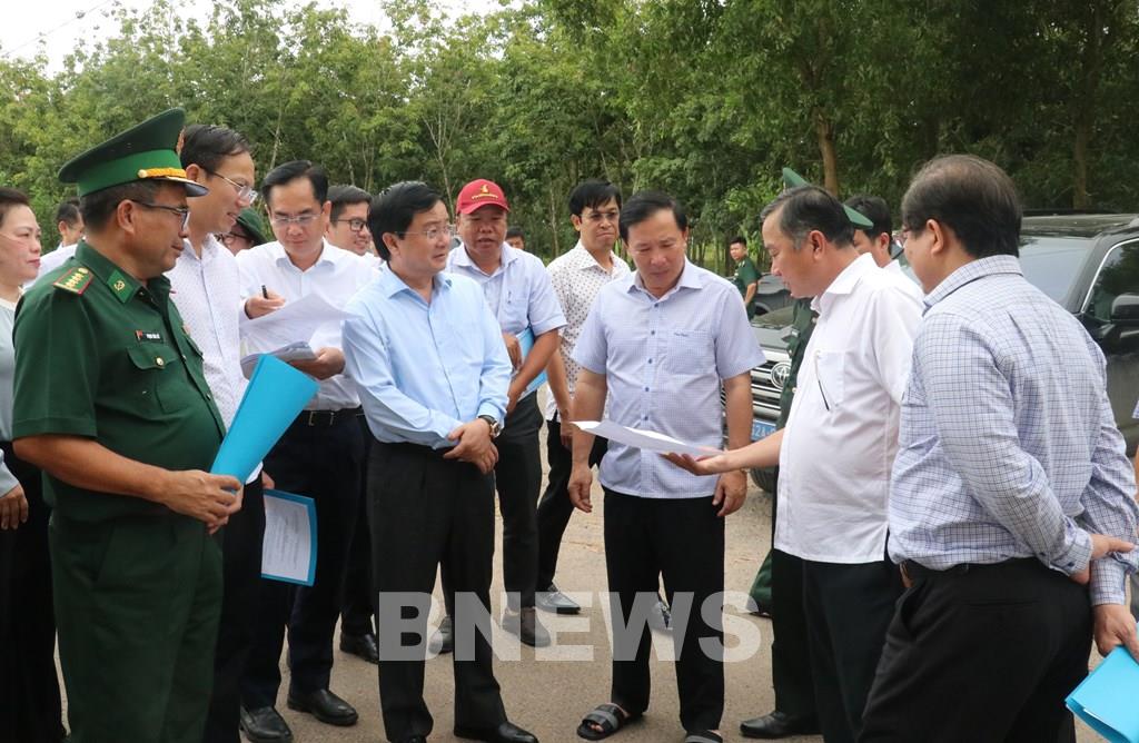 Bí thư Tỉnh ủy Tây Ninh - Nguyễn Văn Quyết khảo sát tại cửa khẩu Phước Tân. Ảnh: Bùi Giang/TTXVN