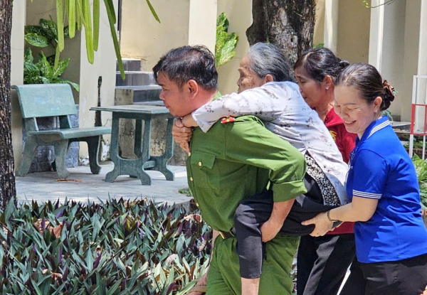 Cán bộ Công an phường Tân Ninh tận tình giúp đỡ cụ bà.