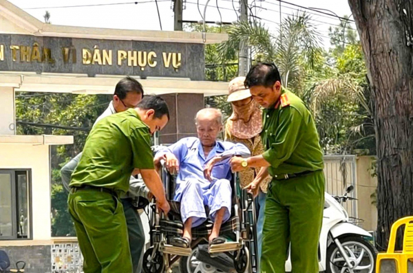 CBCS Công an phường Tân Ninh tận tình giúp đỡ cụ ông ngồi xe lăn.