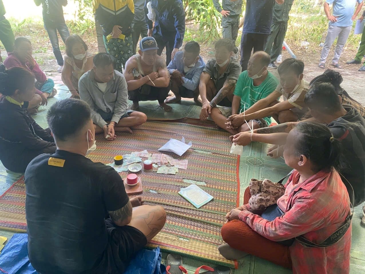 Tại hiện trường, lực lượng chức năng còn bắt quả tang 19 đối tượng liên quan, tịch thu nhiều tang vật gồm 40.000.000 đồng tiền mặt, 16 xe mô tô các loại, 19 điện thoại di động, 2 bộ dụng cụ lắc tài xỉu.
