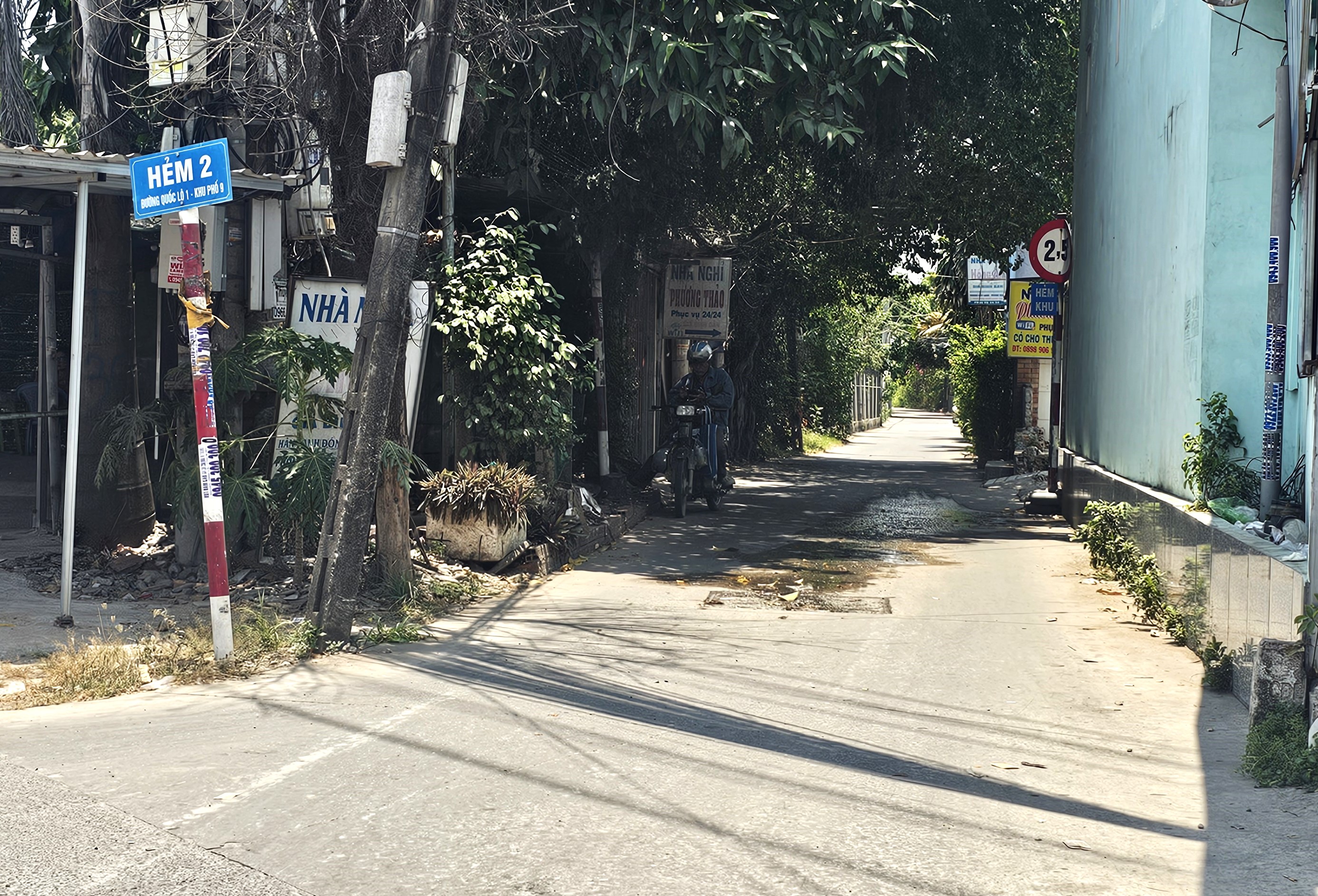 Con đường Hẻm 2 kết nối từ Quốc lộ 1 đi vào KDC Phúc Long. Ảnh: HUỲNH DU