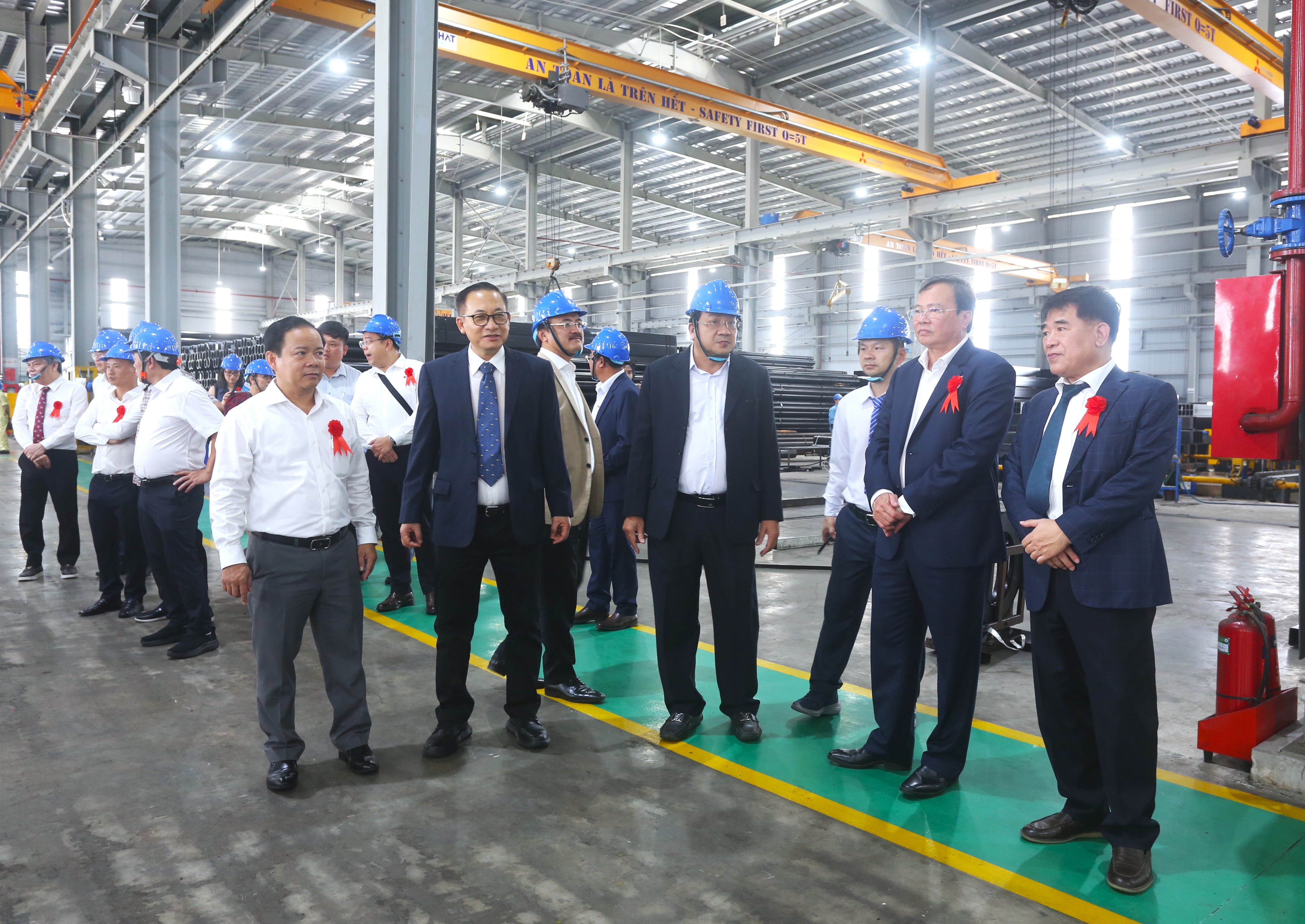 Các đại biểu tham quan nhà máy sản xuất kinh doanh sản phẩm thép Hòa Phát Long An. Ảnh: HUỲNH DU