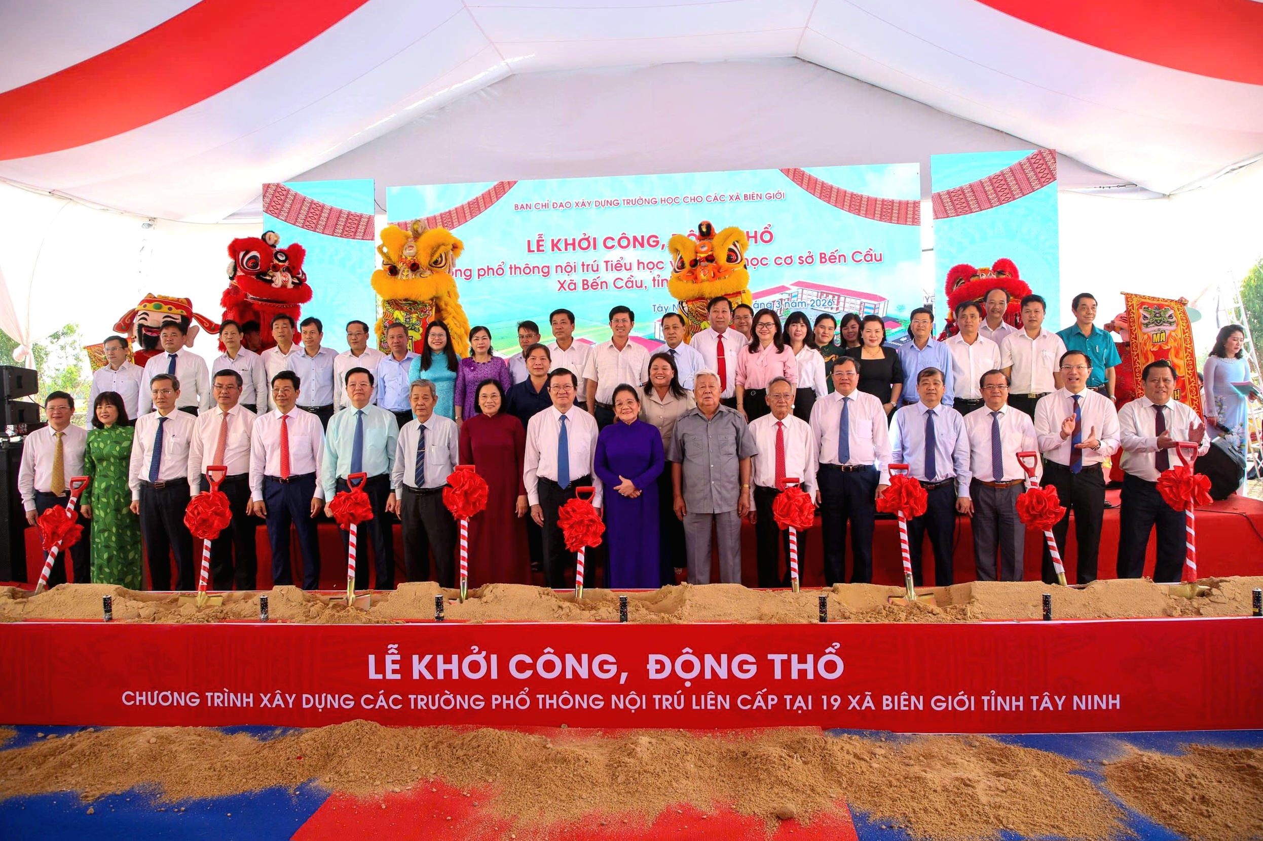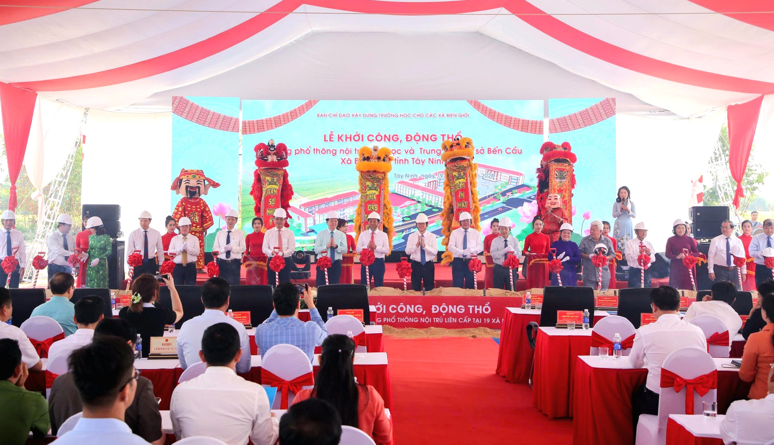 Sáng 19-3, cùng với 121 trường nội trú liên cấp tại các xã biên giới thuộc 17 tỉnh thành trên cả nước đồng loạt khởi công, UBND tỉnh Tây Ninh tổ chức lễ khởi công Trường phổ thông nội trú liên cấp Tiểu học và Trung học cơ sở tại xã Bến Cầu, chương trình xây dựng 19 trường nội trú tại 19 xã biên giới trên địa bàn.