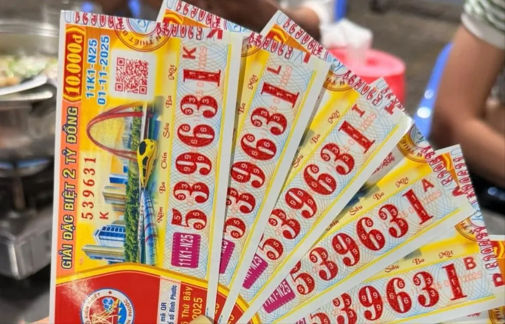 Vé số Bình Phước ngày 1-11 trúng đặc biệt được đổi tại phường Thanh Điền, tỉnh Tây Ninh. Ảnh: MXH