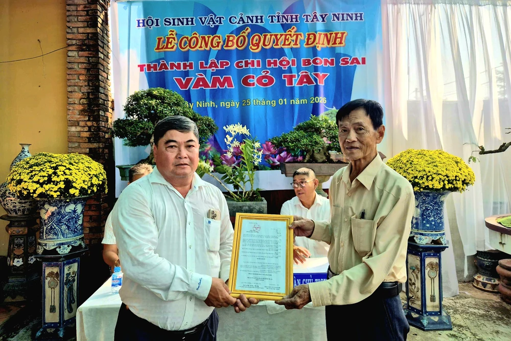 Sáng 25-1, tại Thọ Phú Viên (ấp 3, phường Long An, tỉnh Tây Ninh), Chi hội Bonsai Vàm Cỏ Tây tổ chức lễ ra mắt Ban Chấp hành và công bố quyết định thành lập, chính thức ghi tên mình vào hệ thống các tổ chức bonsai hoạt động tại địa phương.