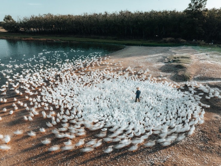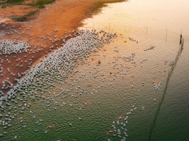 Thời điểm đẹp nhất: Sáng sớm hoặc chiều muộn để bắt trọn khoảnh khắc đàn vịt di chuyển.