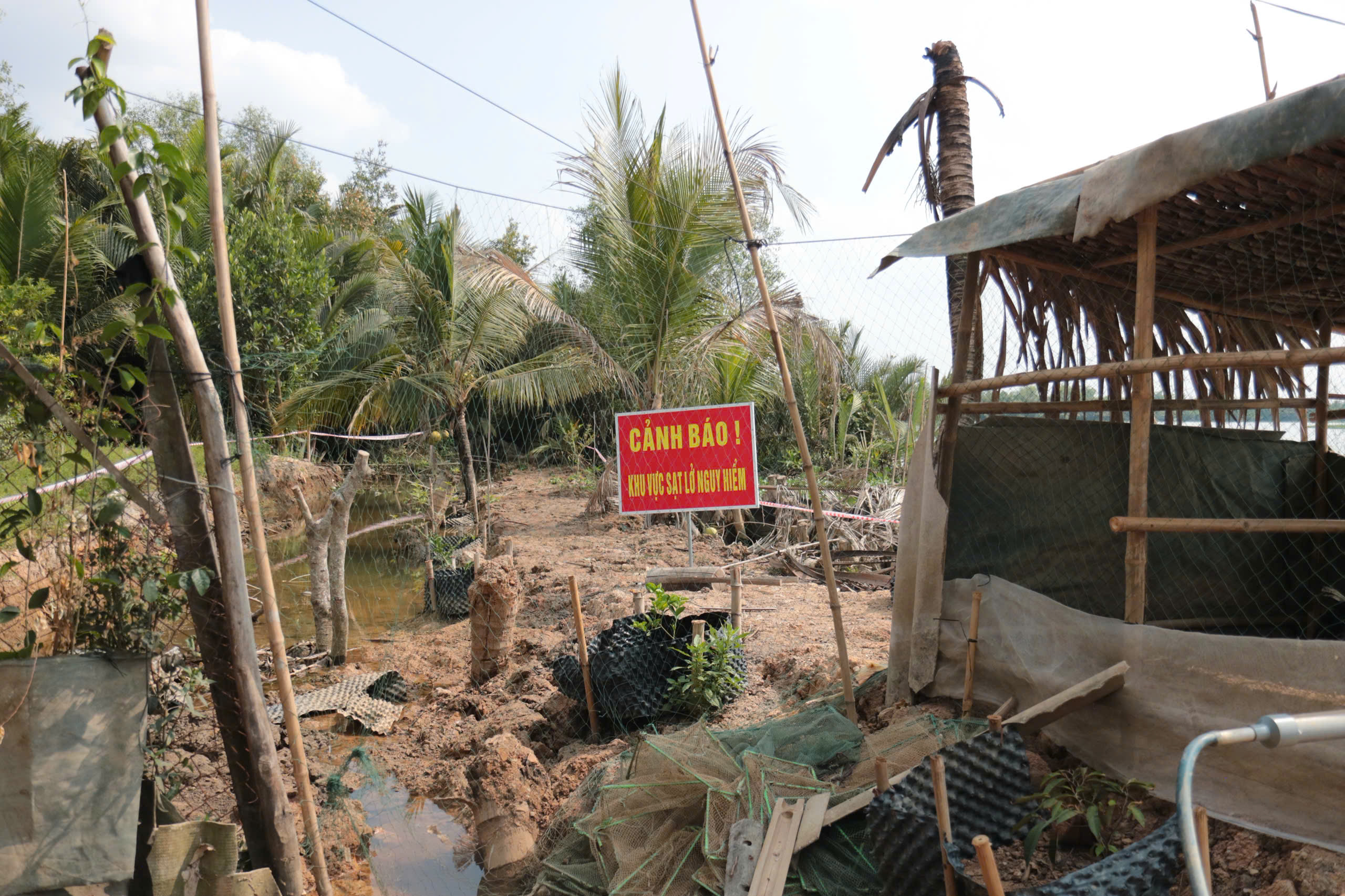 Thực tế, tình trạng sạt lở tại khu vực này đã kéo dài nhiều năm. Chỉ trong khoảng 3-4 năm gần đây, trên đoạn sông dài khoảng 3km qua địa bàn đã xuất hiện khoảng 7 điểm sạt lở nguy hiểm. Dù địa phương từng triển khai các biện pháp gia cố tạm thời như đóng cừ dừa, cừ tràm, đắp đất, song hiệu quả chưa bền vững, sạt lở vẫn tiếp diễn và có xu hướng gia tăng.