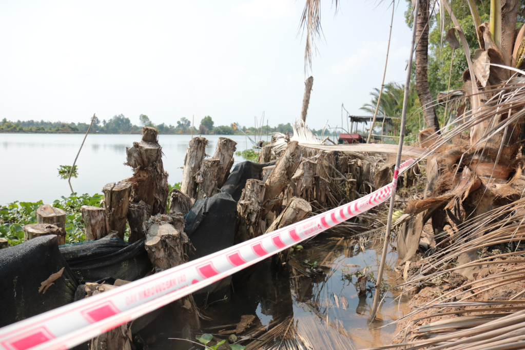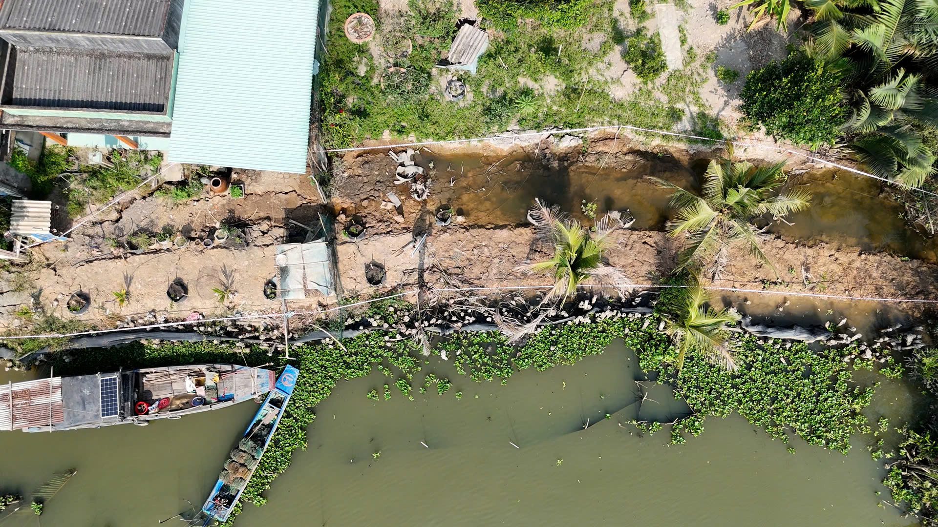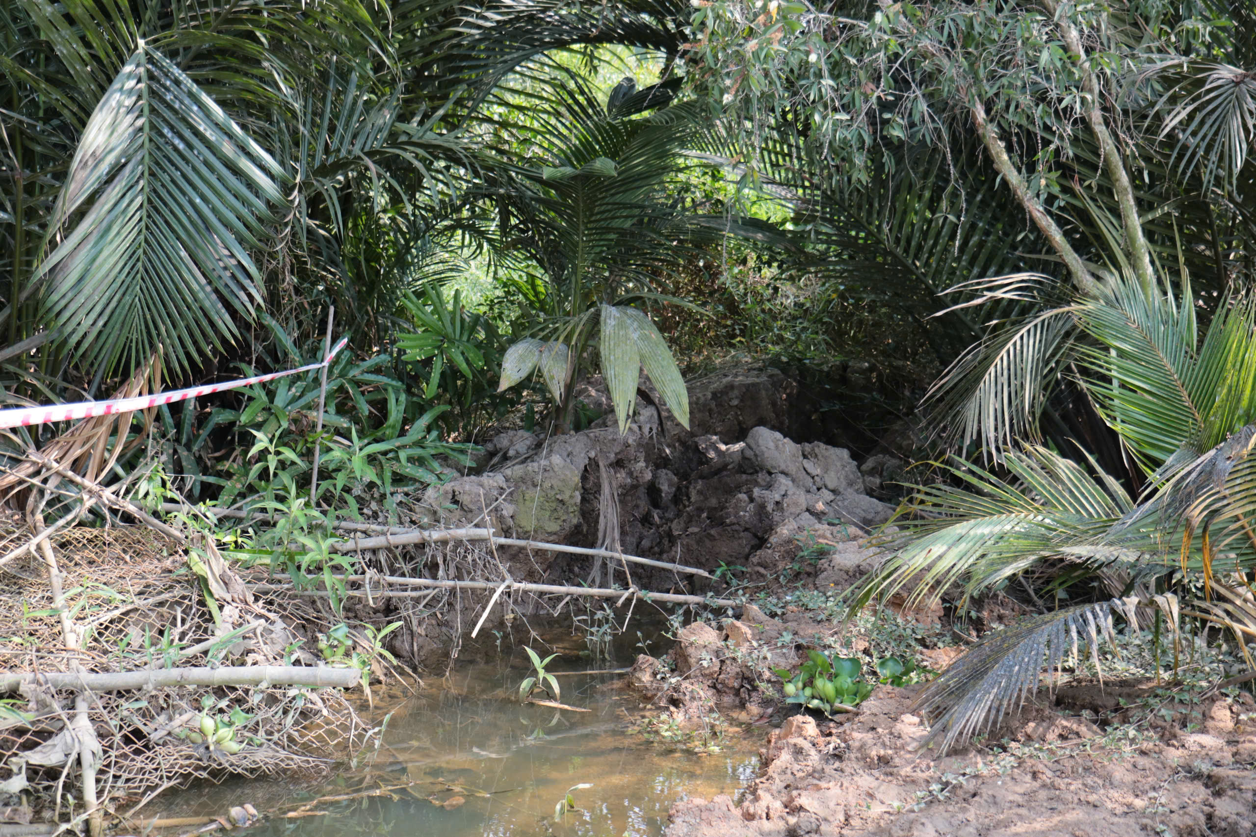 Đáng chú ý, tình trạng sạt lở tại khu vực này đã kéo dài trong nhiều năm. Chỉ trong vòng 3-4 năm qua, trên đoạn sông dài khoảng 3km qua địa bàn xã đã xuất hiện khoảng 7 điểm sạt lở nguy hiểm. Dù địa phương từng triển khai các biện pháp gia cố tạm thời như đóng cừ dừa, cừ tràm, đắp đất, nhưng hiệu quả không bền vững, sạt lở vẫn tiếp tục tái diễn.