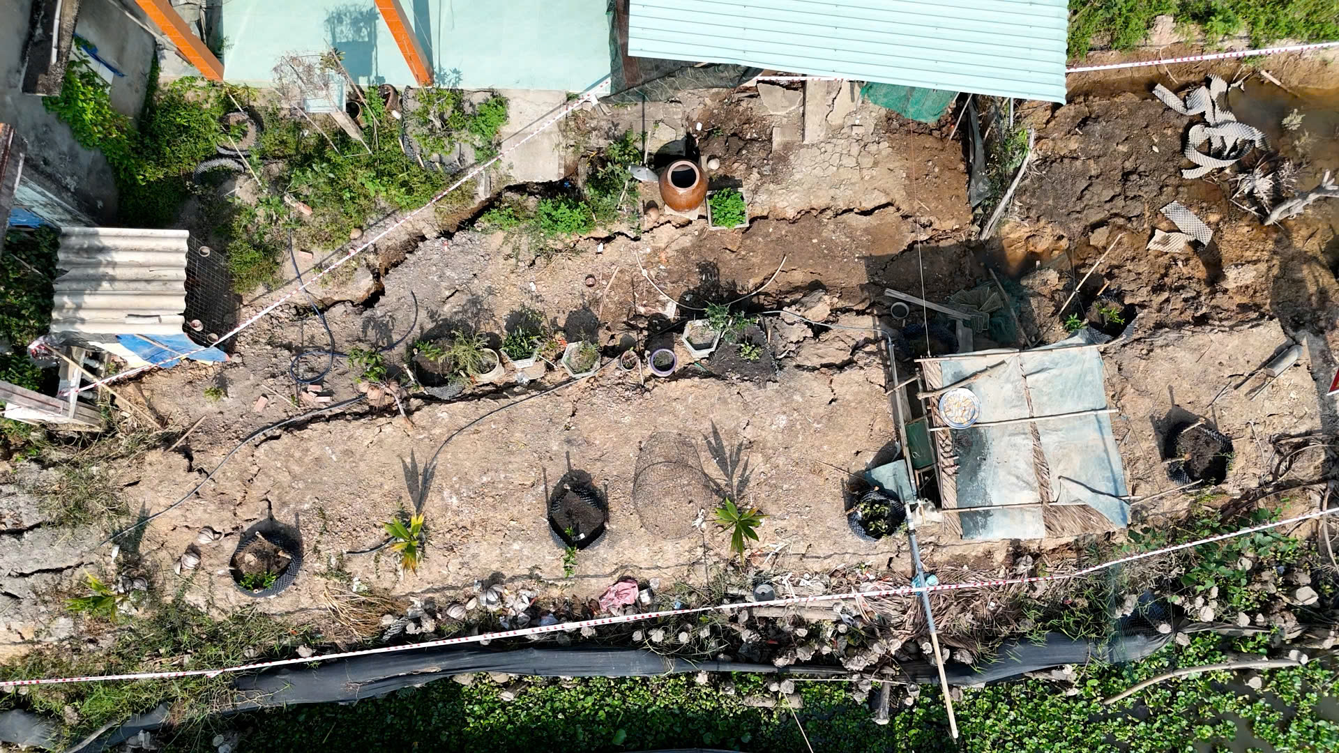 Theo đó, vụ sạt lở mới nhất xảy ra vào ngày 16-4. Khu vực bị ảnh hưởng có chiều dài khoảng 50m, sâu 1m, rộng 4m, chủ yếu theo dạng sụp lún, tạo thành các “hàm ếch” ăn sâu vào nền đất. Đây là dạng sạt lở nguy hiểm, có thể gây sụp đổ bất ngờ nếu không được xử lý kịp thời.