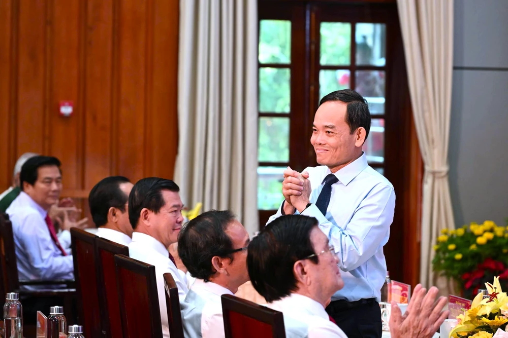 Ông Trần Lưu Quang, Ủy viên Bộ Chính trị, Bí thư Thành ủy TP.HCM tham dự buổi họp mặt. Ảnh: HUỲNH DU
