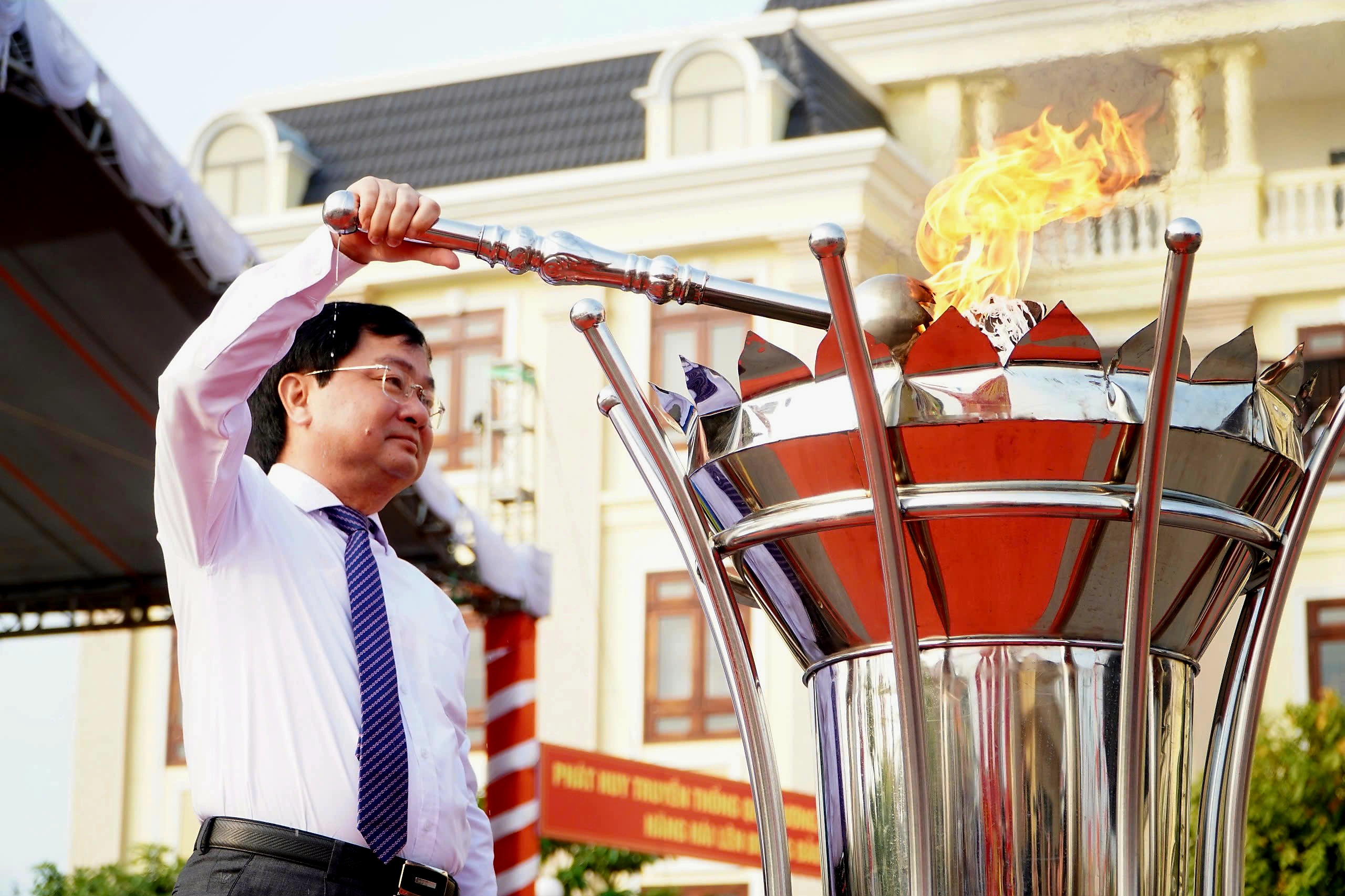 Ông Nguyễn Văn Quyết, Ủy viên Trung ương Đảng, Bí thư Tỉnh ủy Tây Ninh thắp lửa truyền thống. Ảnh: HUỲNH DU