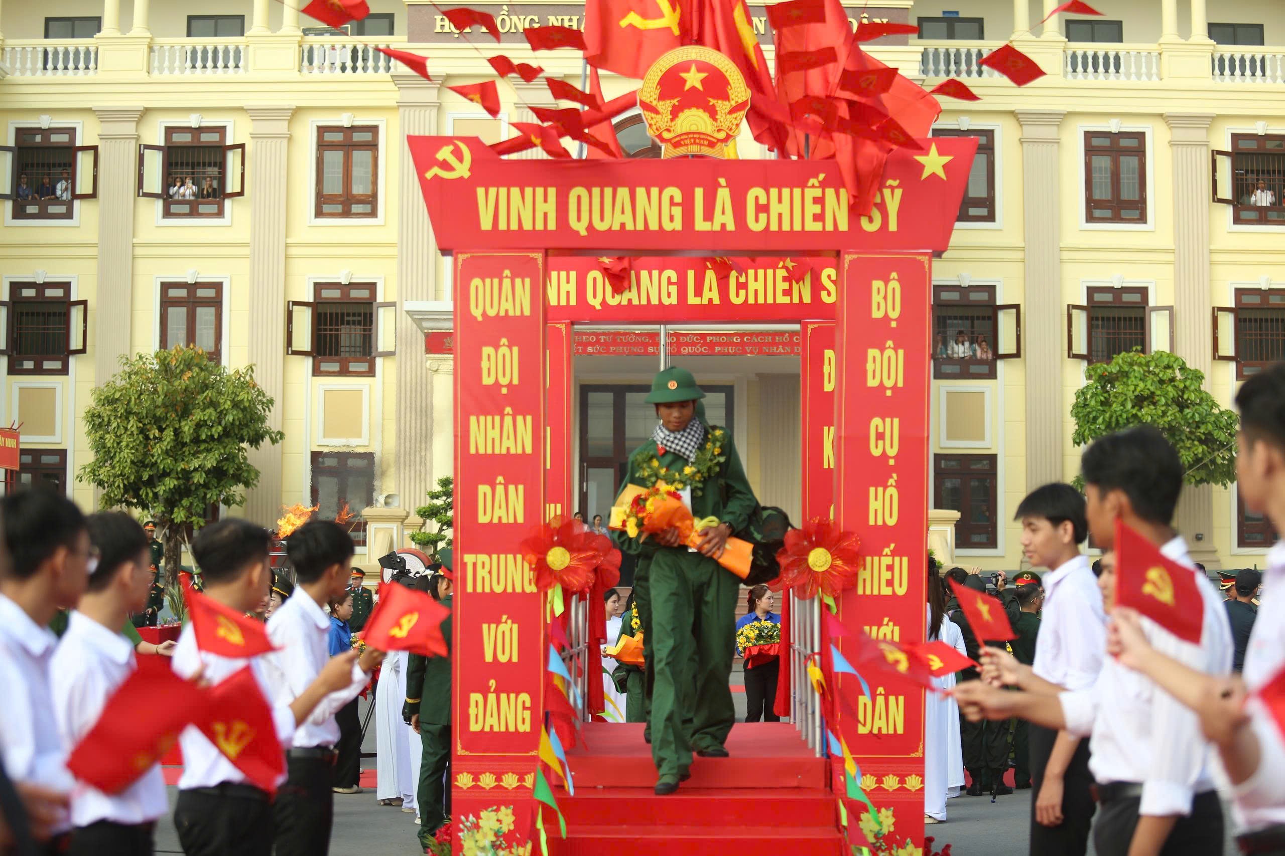 Ngay sau nghi thức tiễn quân, các tân binh bước qua “Cầu vinh quang”, bàn giao về các đơn vị nhận quân.