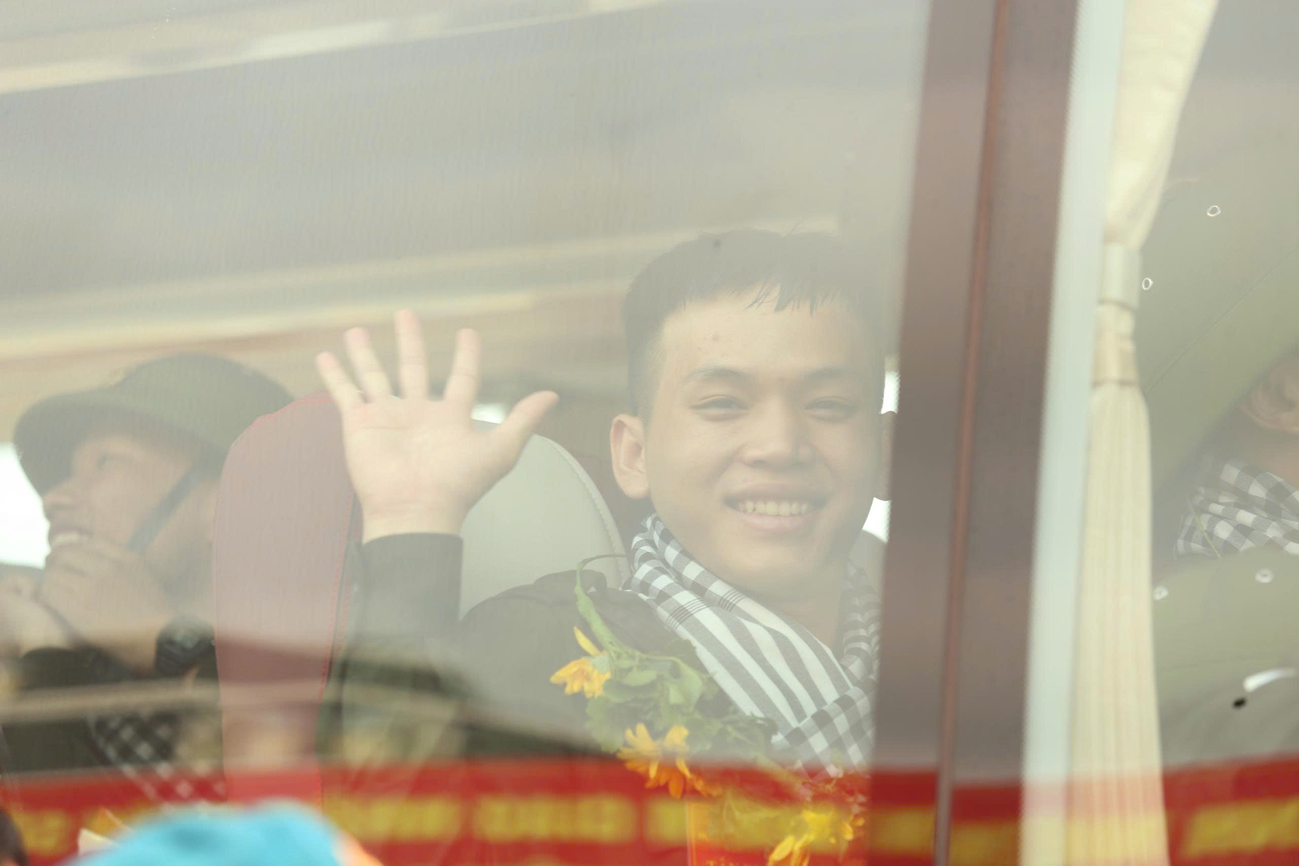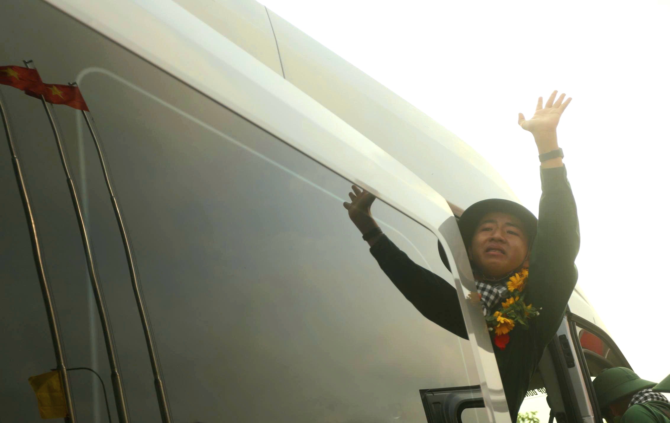 Những cái vẫy chào tạm biệt giữa các thanh niên với người thân. Ảnh: HUỲNH DU