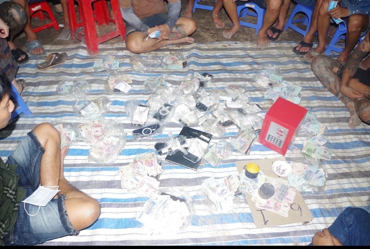 Công an đã bắt giữ 43 đối tượng, thu giữ số tiền tang vật trên chiếu bạc gần 30 triệu đồng, thu giữ trong người các đối tượng gần 260 triệu đồng, 43 điện thoại di động và đưa về trụ sở 31 xe máy các loại.