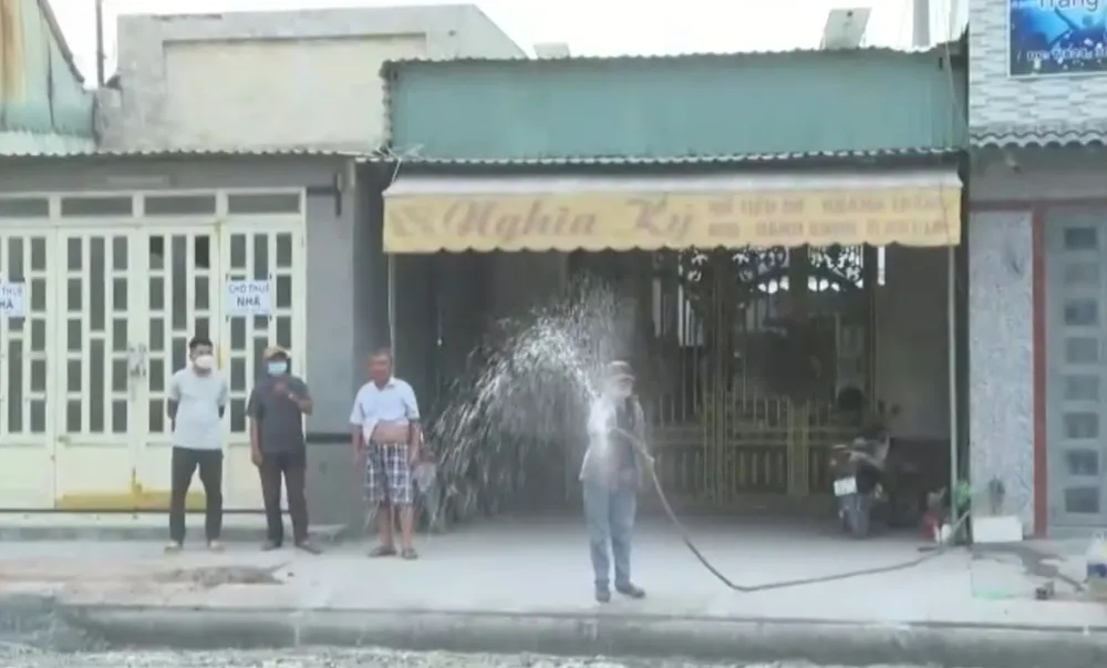 Người dân khổ sở, phải thường xuyên tưới nước để bớt bụi. Ảnh: HD