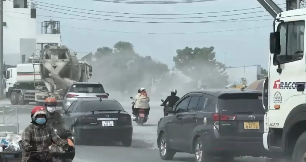 Theo người dân nơi đây, những ngày nắng, chỉ cần một chiếc xe tải chạy ngang, bụi mịn lập tức cuồn cuộn bay lên trắng xóa cả đoạn đường. Dọc tuyến ĐT.824, nhiều gia đình phải đóng kín cửa suốt ngày, che chắn bằng nhiều lớp vải nhưng vẫn không ngăn nổi lớp bụi len vào từng gian nhà.