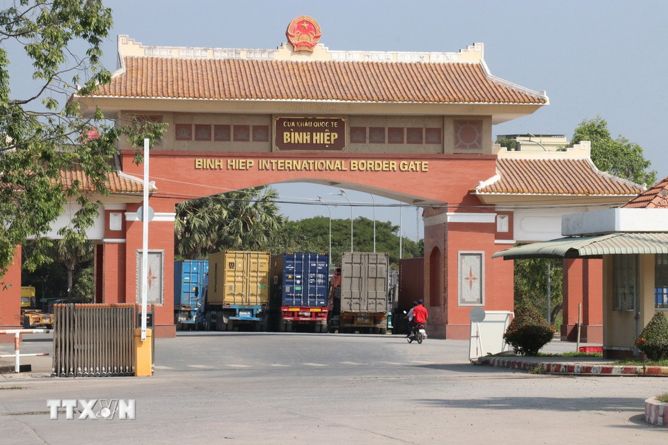 Các phương tiện thực hiện thủ tục thông quan tại Cửa khẩu quốc tế Bình Hiệp (xã Bình Hiệp, Tây Ninh). (Ảnh: Bùi Giang/TTXVN)