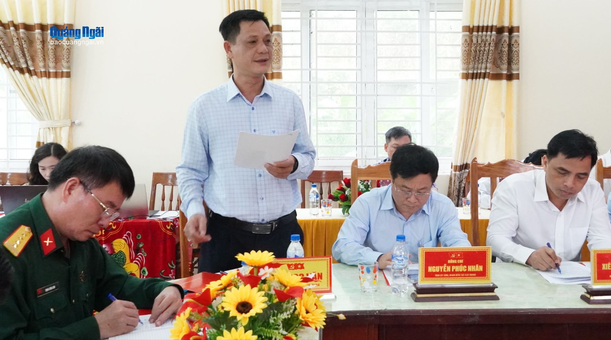 Bí thư Đảng ủy xã Tây Trà Hồ Ngọc Văn trao đổi tại buổi làm việc.