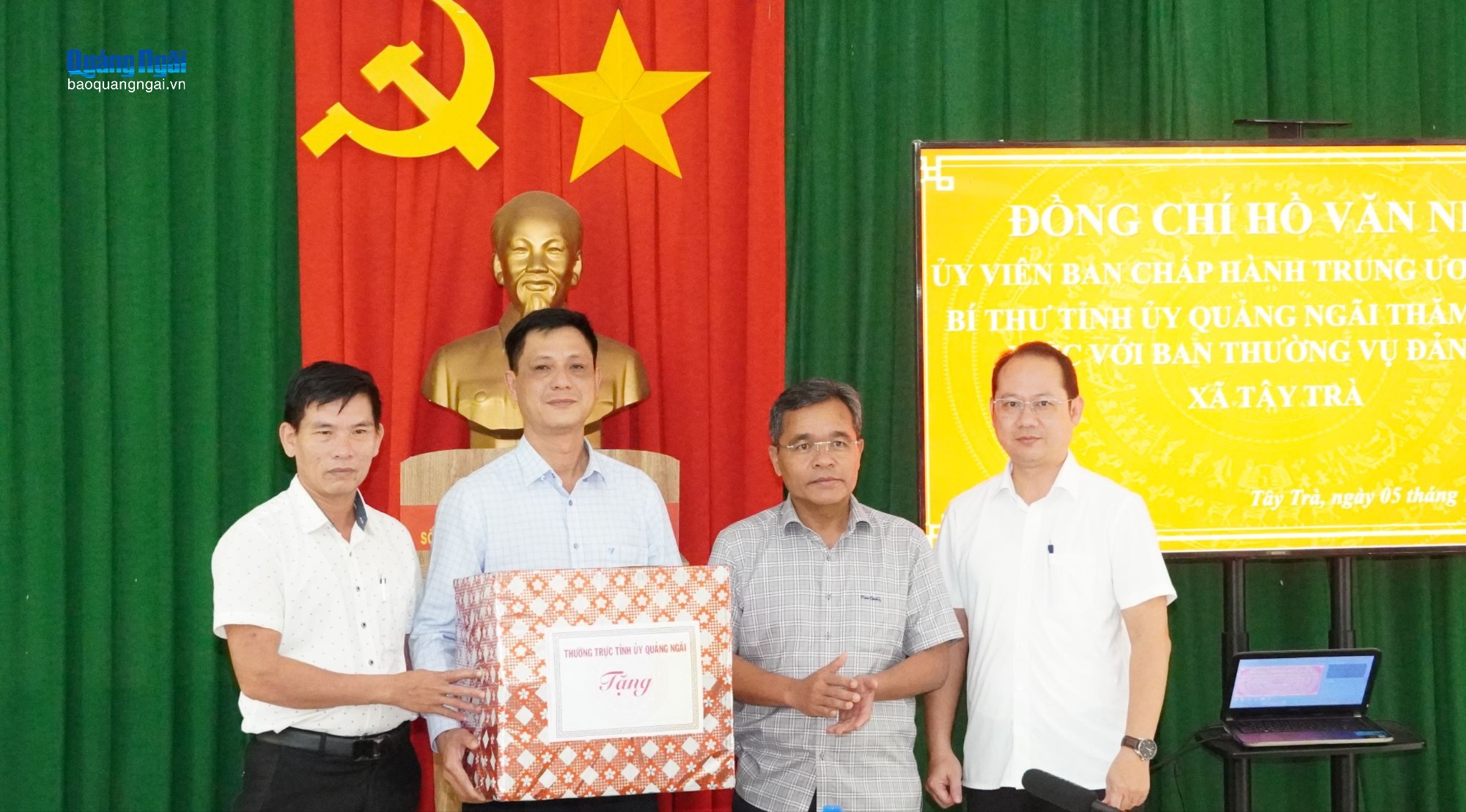 Ủy viên Trung ương Đảng, Bí thư Tỉnh ủy Hồ Văn Niên tặng quà cán bộ xã Tây Trà nhân dịp về thăm và làm việc với địa phương.