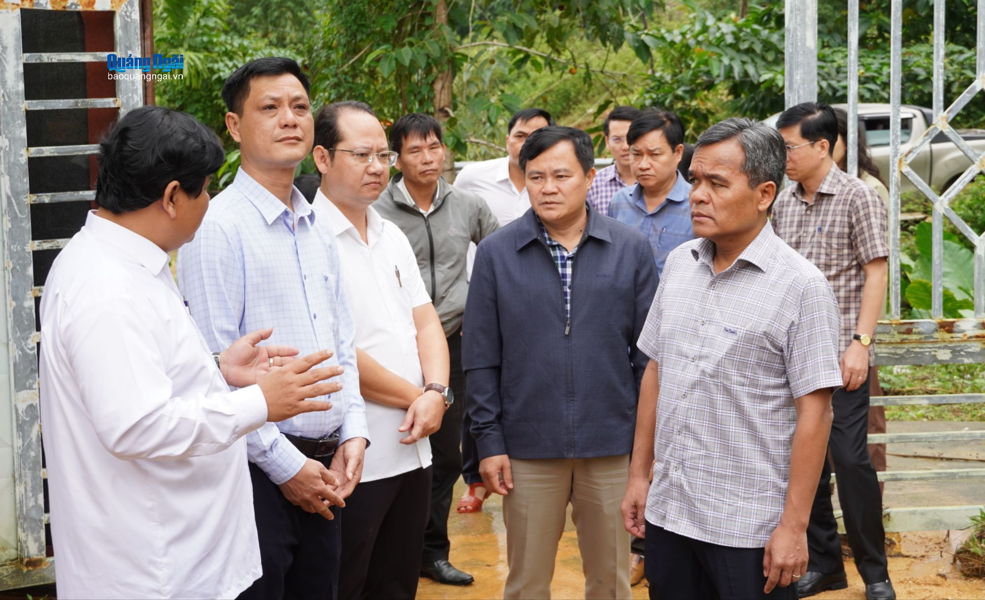 Trước khi làm việc với Đảng ủy xã Tây Trà, đồng chí Hồ Văn Niên đã đi kiểm tra thực tế một số điểm bị thiệt hại do mưa bão gây ra trên địa bàn xã và tình hình sạt lở vùi lấp Trạm Y tế Trà Xinh.