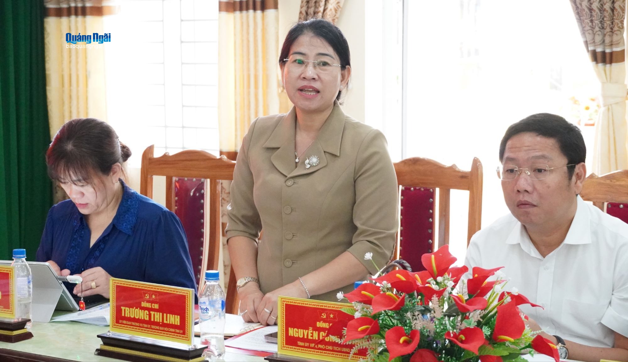 Ủy viên Ban Thường vụ Tỉnh ủy, Trưởng ban Nội chính Tỉnh ủy Trương Thị Linh trao đổi tại buổi làm việc.