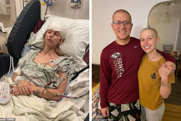 Chồng cô, anh Sean (33 tuổi) ngay lập tức đưa vợ đến bệnh viện. Kết quả chụp chiếu khiến cả hai chết lặng: một khối u 4cm đang hình thành trong não.