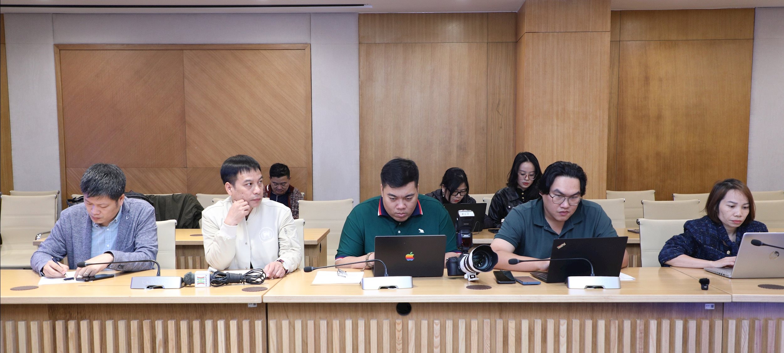 Các cơ quan thông tấn báo chí tham dự buổi họp báo.
