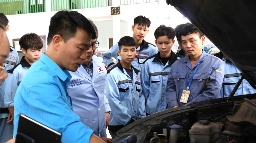 Trường Trung cấp Nghề Thái Nguyên tại một tiết học về chuyên ngành Công nghệ ô tô. Ảnh: Trường Trung cấp Nghề Thái Nguyên