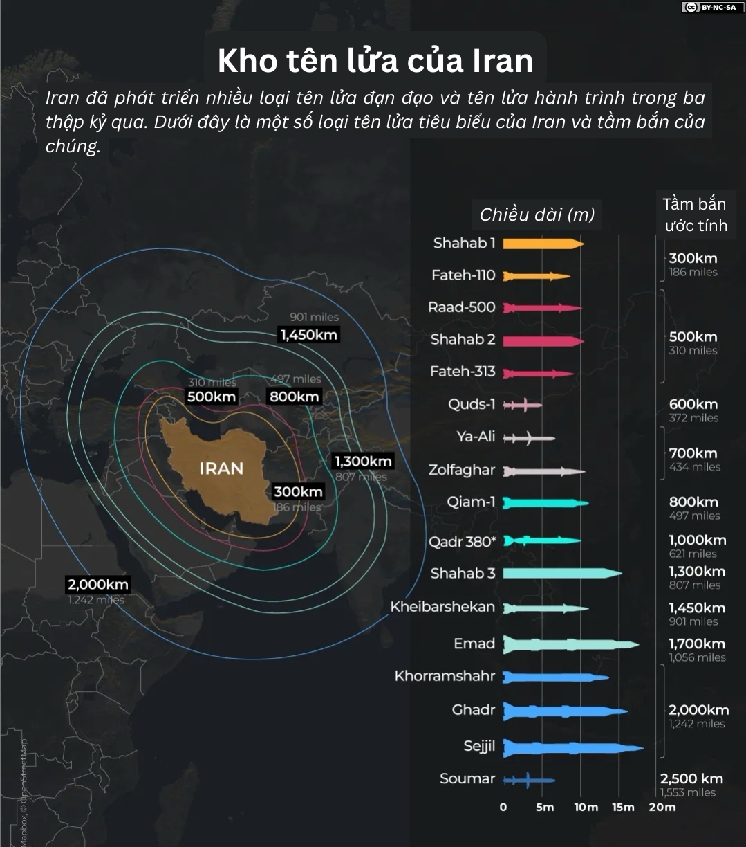 Kho tên lửa của Iran (Nguồn: Dự án Phòng thủ Tên lửa CSIS/Al Jazeera)