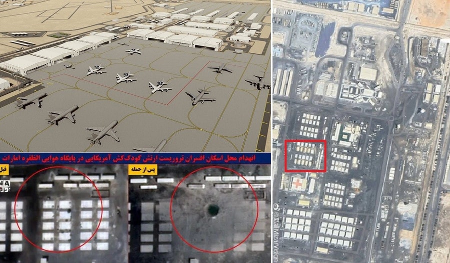 Hình ảnh vệ tinh xác nhận thiệt hại nghiêm trọng tại căn cứ quân sự Al-Dhafra của Mỹ ở UAE, do bị trúng tên lửa đạn đạo Khorramshahr-4 của Iran.
