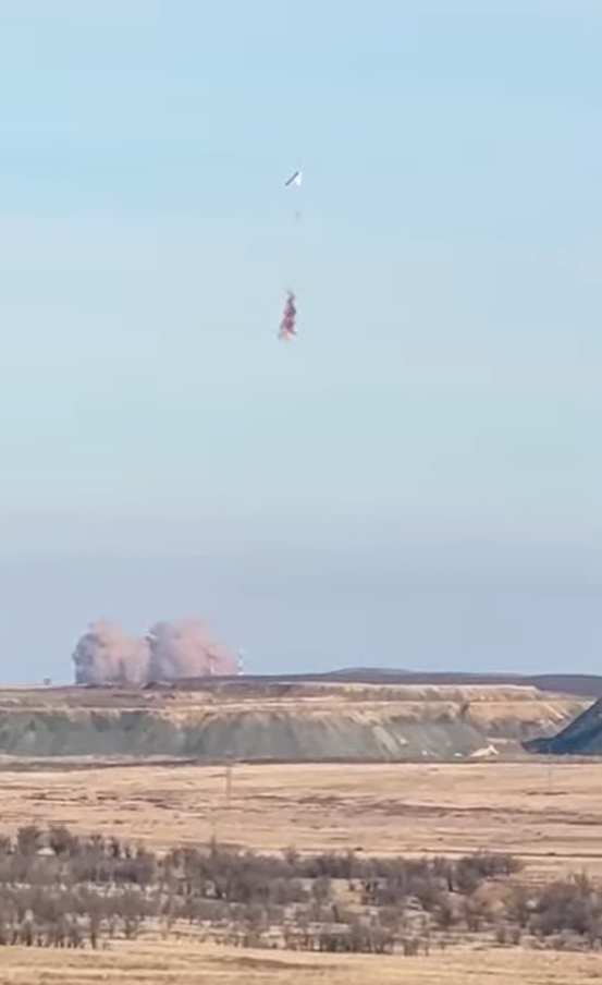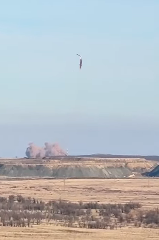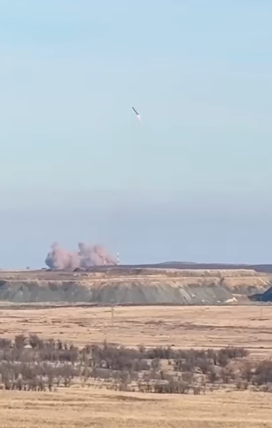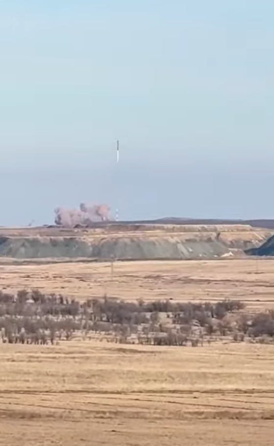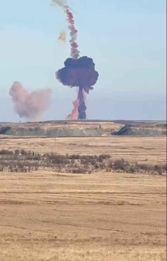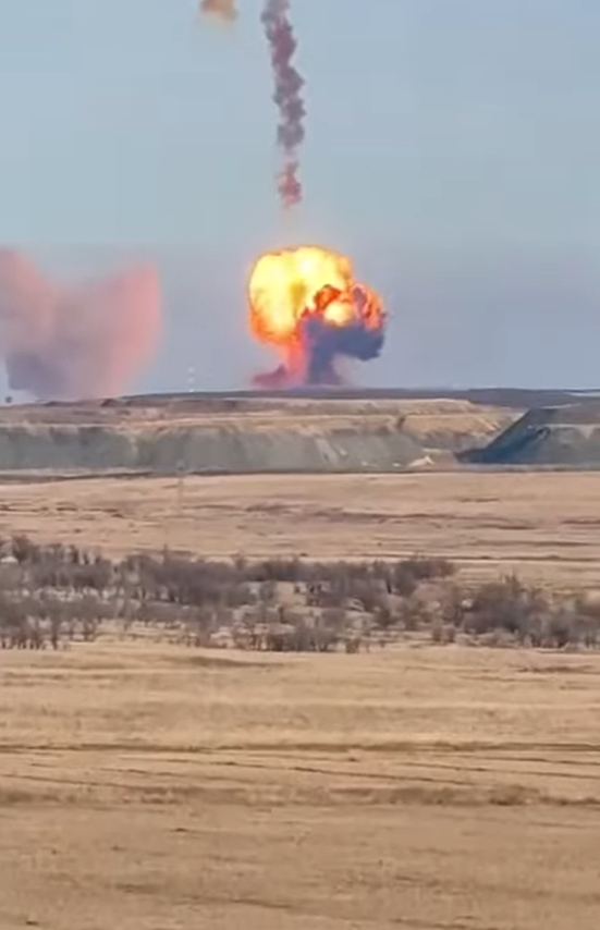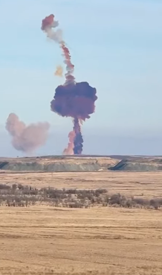 Quân đội Nga vẫn giữ im lặng về vụ tai nạn, nhưng tiếng tên lửa rơi đã được nhìn thấy và nghe thấy từ nhiều dặm xung quanh căn cứ không quân Dombarovsky ở Tỉnh Orenburg gần biên giới Nga-Kazakhstan. Ảnh: @XomaMilitarnyi.