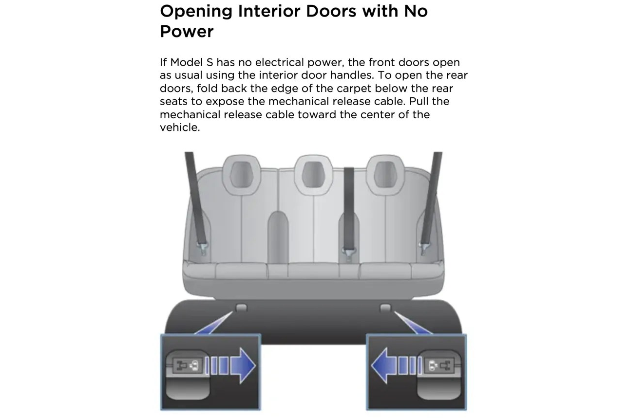 Thiết kế lẫy mở cửa khẩn cấp trên chiếc Tesla Model S được đánh giá "không trực quan", thậm chí có một số báo cáo cho rằng cơ chế này không hoạt động hoặc bị kẹt khi có tình huống nguy hiểm xảy ra.
