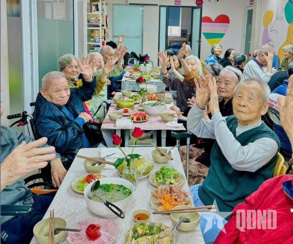 Bữa tất niên Tết Dương lịch 2026 ấm cúng tại Trung tâm Dưỡng lão Diên Hồng. Ảnh do trung tâm cung cấp