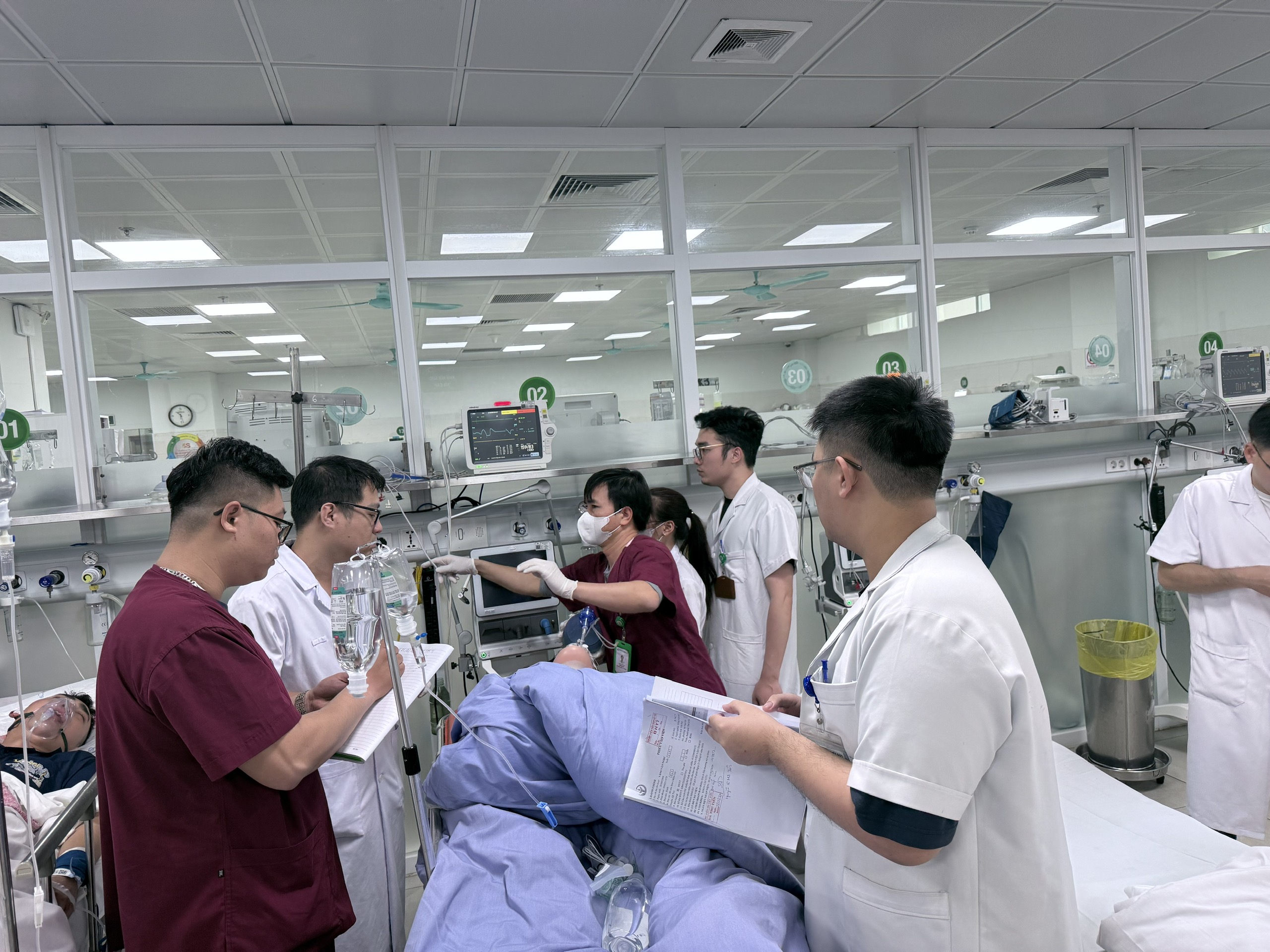 Y bác sĩ đang nỗ lực cấp cứu cho nam bệnh nhân nhập viện do tai nạn giao thông.