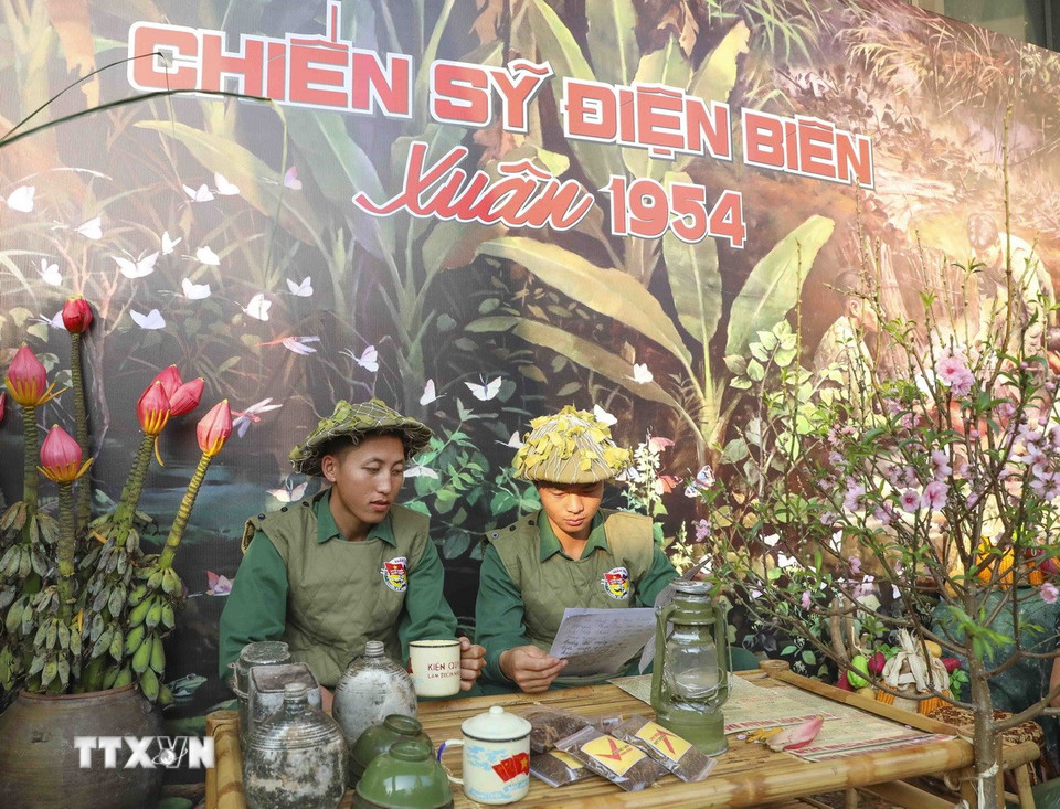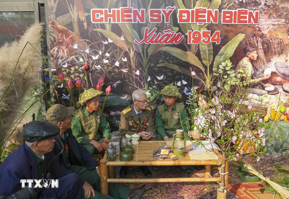 Mâm trà Xuân năm 1954, kết nối ký ức chiến tranh với đời sống hôm nay. (Ảnh: Xuân Tư/TTXVN)