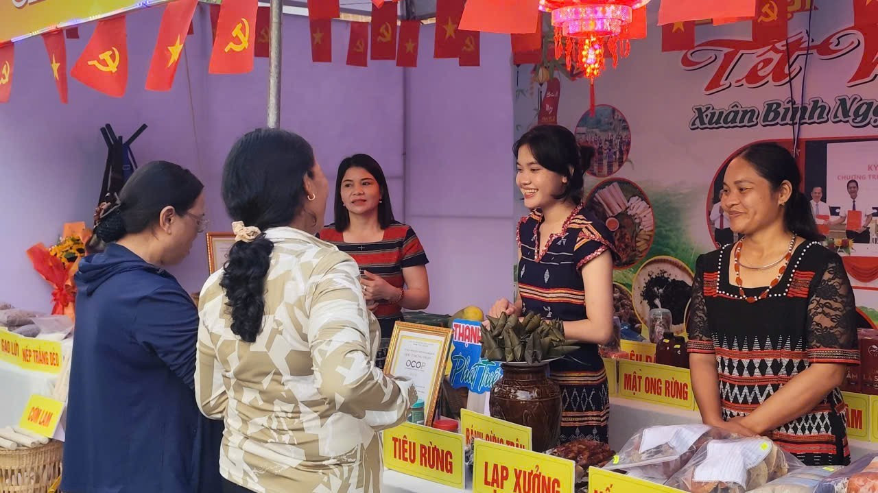 Sản vật hàng hóa của người dân Cơ Tu nuôi trồng, chế biến được giới thiệu tại phiên chợ Tết Bính Ngọ 2026 ở xã Thạnh Mỹ. Ảnh: DŨNG LOAN