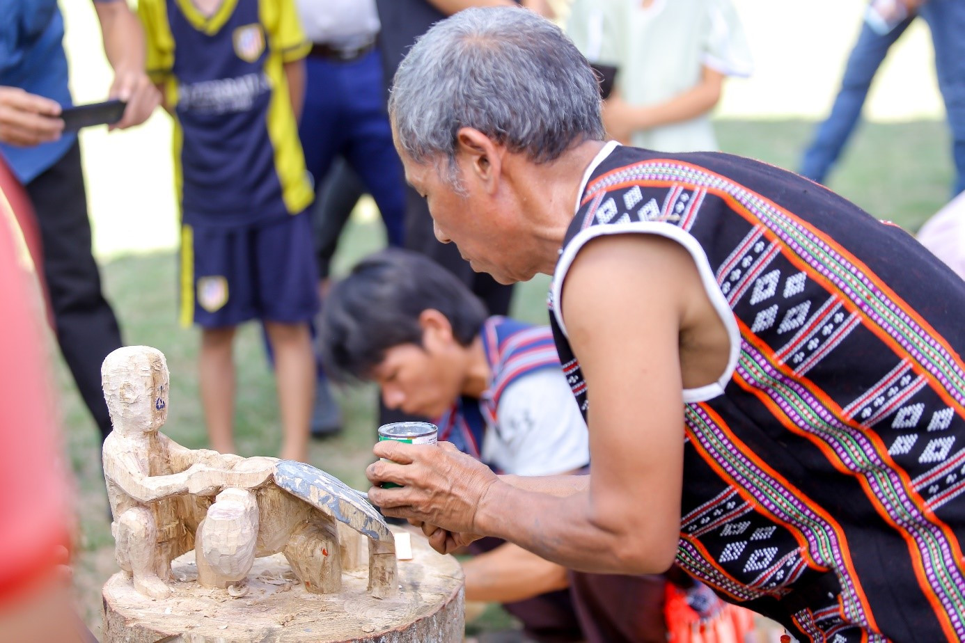 Nghệ thuật đục tượng gỗ của người Cơ Tu các xã phía tây Đà Nẵng là di sản văn hóa đặc sắc. Ảnh: DŨNG LOAN